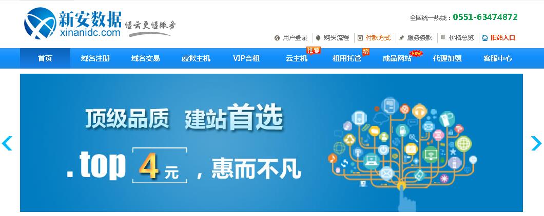 新安数据,创建于2006年,隶属于合肥网联网络科技有限公司。致力于基础互联网应用标准化产品、云计算综合服务解决方案的互联网业务服务企业。专注于基础互联网业务服务,提供域名注册、虚拟主机、服务器合租、VPS、云主机、主机租用、企业邮局、网站推广等企业应用服务。为个人站长,企业,政府,校园等机构提供最稳定的网络资源与最优质的服务。