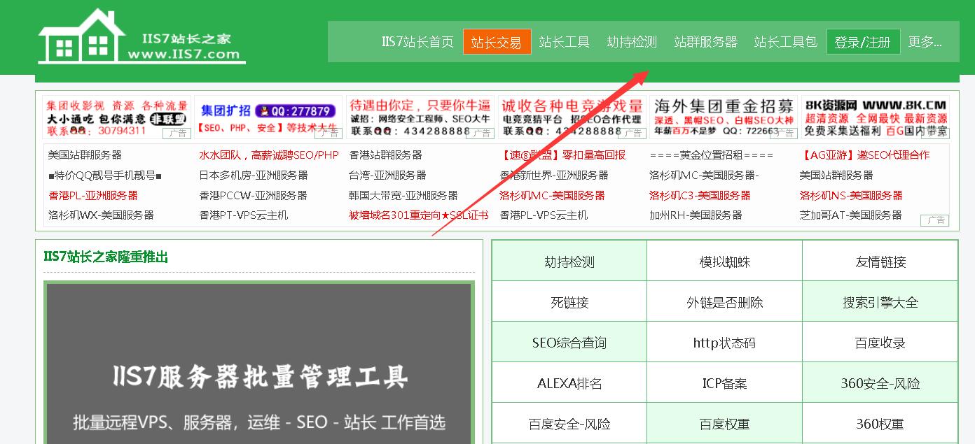 1、使用IIS7网站监控工具,进入到IIS7站长之家官网,在首页点击右上角“网站监控”。